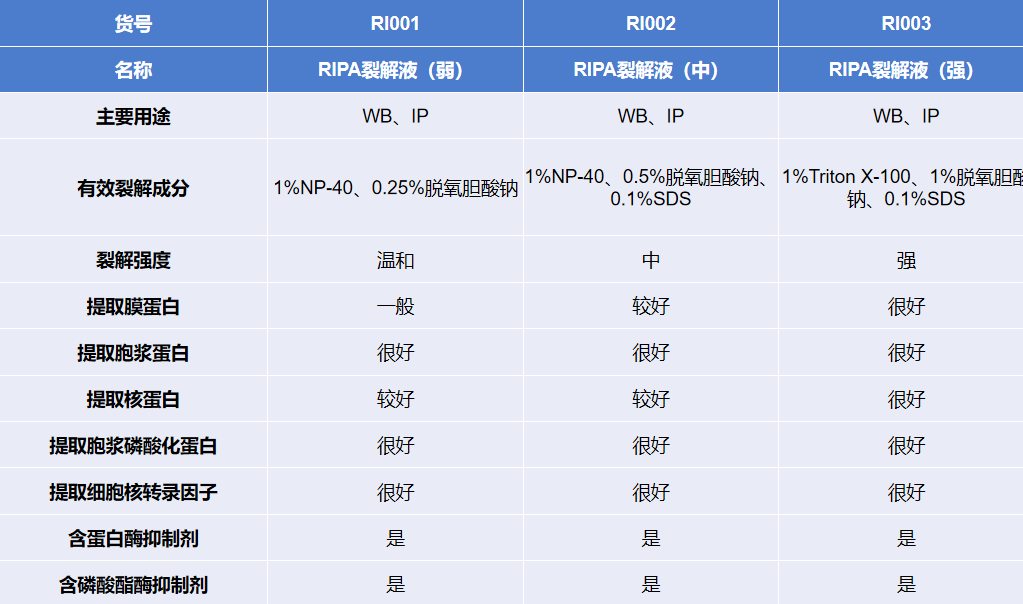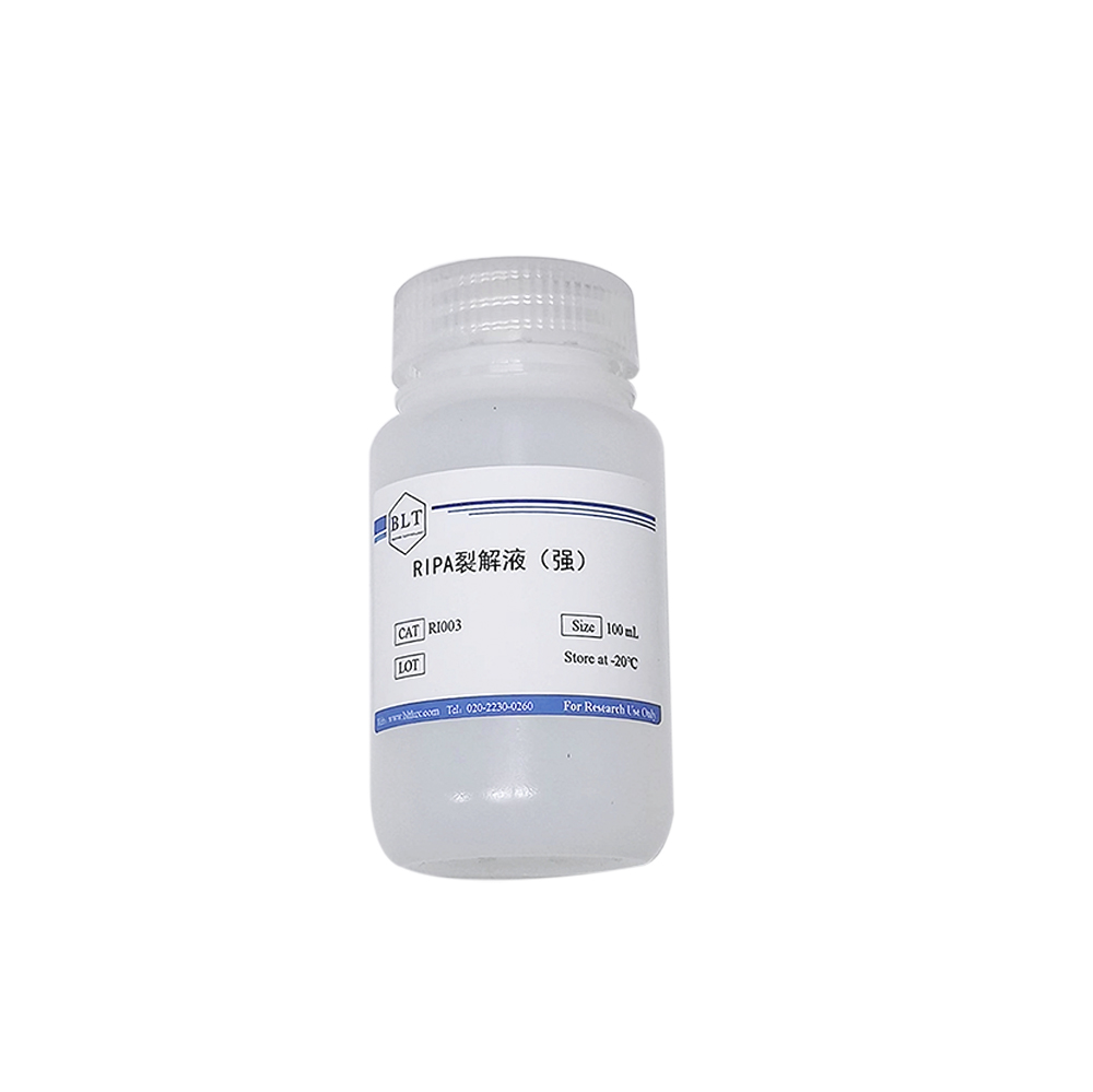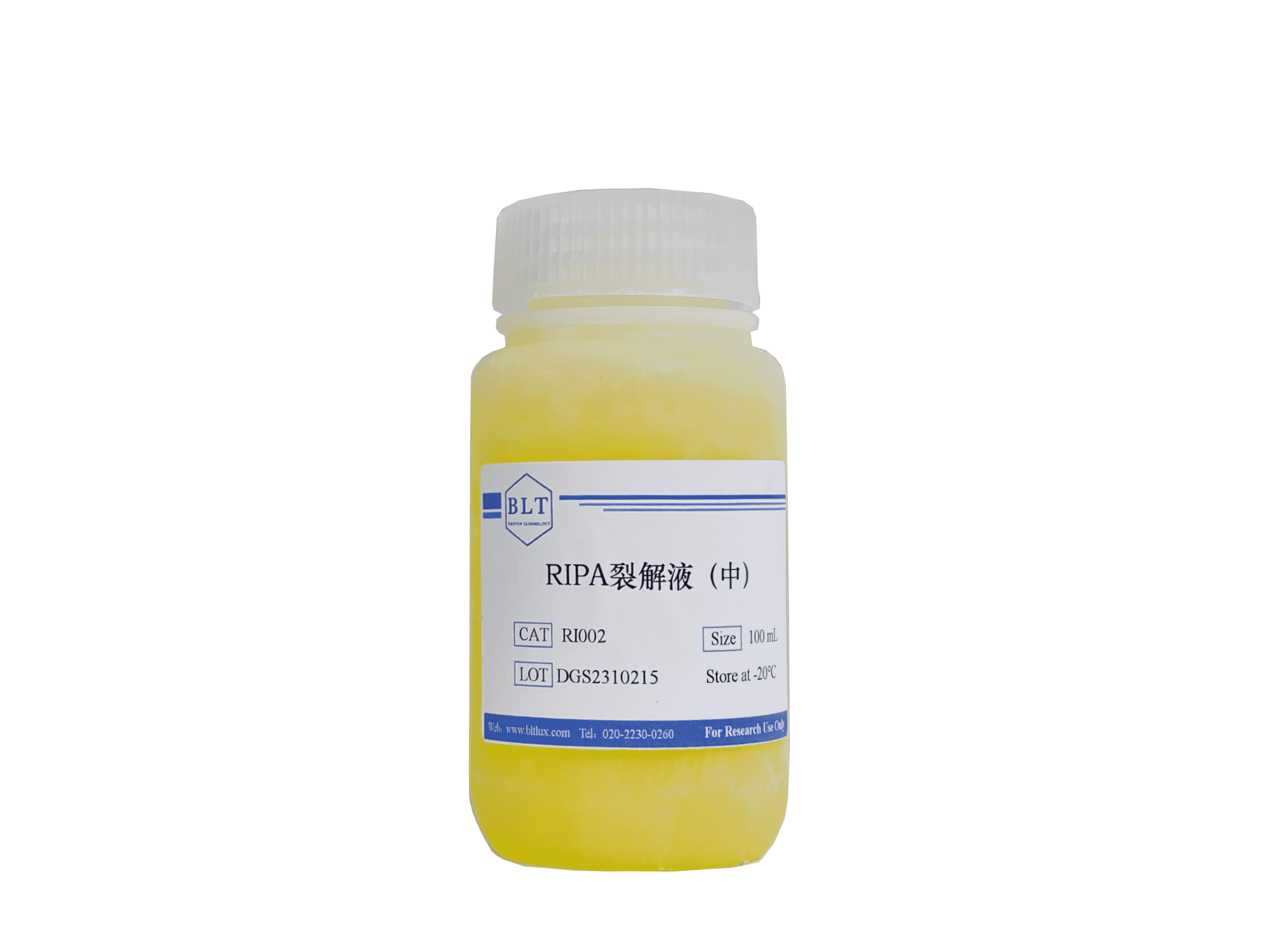 RIPA裂解液(RIPA Lysis Buffer)是一種傳統(tǒng)的細胞組織快速裂解液,RIPA裂解液裂解得到的蛋白樣品可以用于常規(guī)的Western Blot、IP、ELISA等。