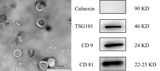 圖2:純化后外泌體TEM 圖及外泌體WB實驗結果圖