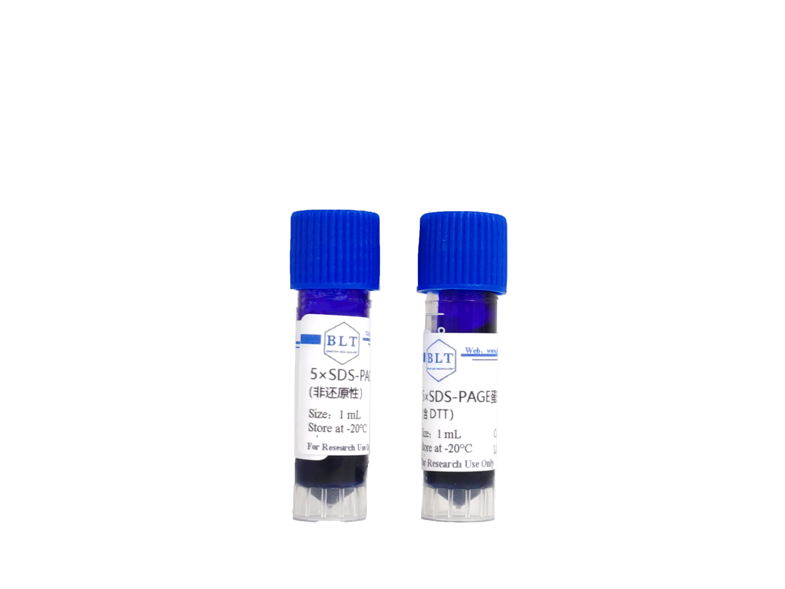 5×SDS-PAGE蛋白上樣緩沖液(含 DTT) (SDS-PAGE Sample Loading Buffer,5×(with DTT))是蛋白質(zhì)樣品進行SDS-PAGE的即用型上樣緩沖液。產(chǎn)品中的SDS可與蛋白質(zhì)結(jié)合成SDS-蛋白質(zhì)復合物,使其帶上大量的負電荷,消除蛋白質(zhì)本身的電荷差異;產(chǎn)品中的DTT能使半胱氨酸殘基間的二硫鍵斷裂,破壞蛋白質(zhì)的結(jié)構(gòu),消除蛋白質(zhì)結(jié)構(gòu)之間的差異。最終,蛋白質(zhì)的遷移速度只與其分子量大小有關。溴酚藍用作電泳時的指示劑,以確定電泳的進行情況。
